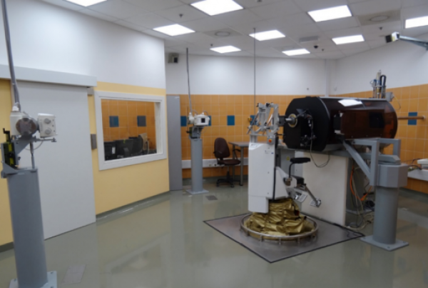 At the eye therapy room, protons have an energies ranging from 0 to 60 MeV where the energy can only be precisely regulated in the 10 to 60 MeV range. The spot size of the beam can be as large as 40mm (in diameter) with a beam field homogeneity of ~5%. The facility is controlled by the treatment control system. Dedicated devices like: X/Yscanner or 3D scanner, PMMA wheel, water phantom and set of ionization chambers with electrometers are applied for proton beam diagnostic and dosimetry.
